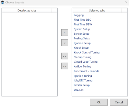 | 2. | 将显示所选布局中包含的所有选项卡的列表。 |