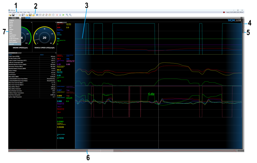 扫描频道选项卡。 选择此选项卡可查看 VCM Live 正在监控的所有通道列表。当您在布局中添加使用相应测量值的仪表、图表或列表时,系统会自动监控这些通道。 |